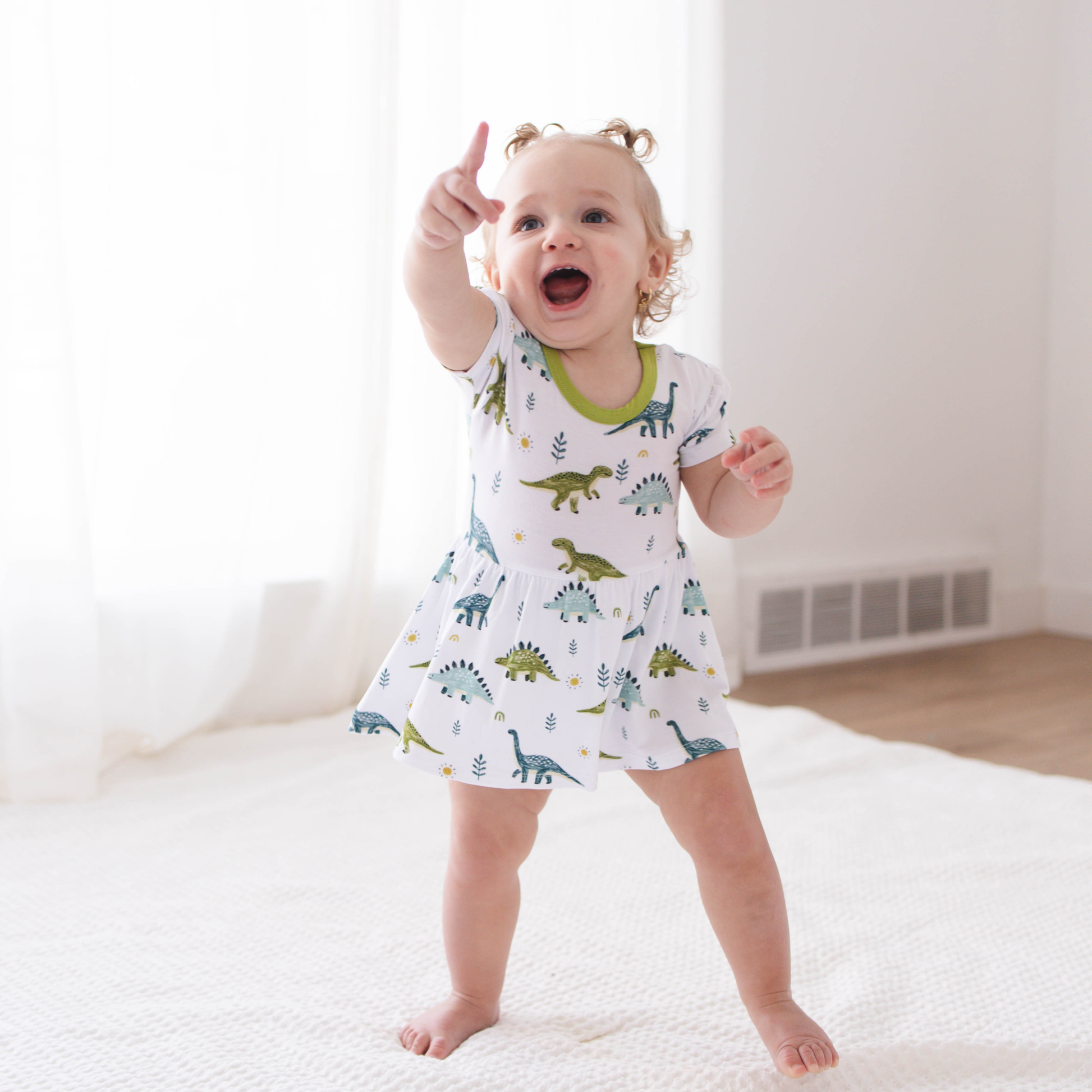 The softly flared skirt allows room to move and play, while the attached bodysuit ensures a secure fit no riding up or fussing. Thoughtfully made for everyday outings, special moments, and everything in between.